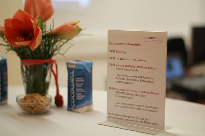 Ludwig Senger von der INTERNA Senger & Pichler IT-Consulting OG präsentierte das Innovations-Projekt InfoConnect, welches zukünftig die neue Kommunikation in Schulen darstellen wird. Dabei soll die Kommunikation zu den Schülern und Eltern völlig neu organisiert werden. Wichtige Informationen können per Handy oder Web verteilt werden und alle Beteiligten (sowohl Lehrer, Schüler als auch Eltern) bleiben immer am Laufenden über Veranstaltungen, Schulausfüge, uvm. Kurzfristige Ankündigungen, Krank- und Abwesenheitsmeldungen können unkompliziert und schnell über eine spezielle App abgewickelt werden und somit den Kommunikationsfluss vereinfachen und beschleunigen. Die Demoversion wird ab Februar 2015 gelauncht. Auch bei diesem innovativen Projekt ist die connetation maßgeblich an der Umsetzung beteiligt und übernimmt die gesamte App-Entwicklung und die Programmierung des Informationssystems.
