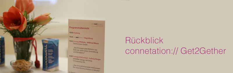 Zum alljährlichen Get2Gether lud die connetation Web Engineering am 20. November 2014 erneut Kunden und Partner ins connetation Headquarter in die Eberhard-Fugger-Straße in Salzburg. Der Abend startete mit Fachvorträgen zu den Themen Wikifolio und InfoConnect und fand beim gemütlichen Zusammensein und Netzwerken seinen Ausklang. Bei den Fachvorträgen wurden speziell Themen aufgegriffen, die brandaktuell sind und bei welchen die connetation die Umsetzung und Weiterentwicklung dieser Projekte unterstützt.