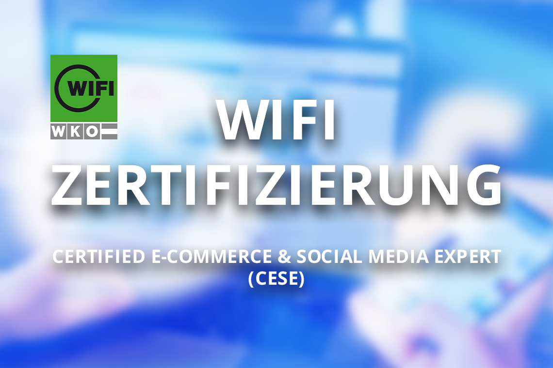 Durch die erneute WIFI Zertifizierung zum "E-Commerce & Social Media Expert (CESE)" verfügt Geschäftsführer Michael Gebhart nachweislich über das Know-How, Sie bei Ihren Digitalisierungsprojekten tatkräftig unterstützen zu können.