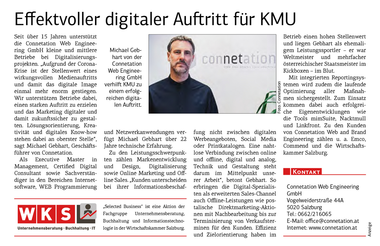 Diese Fragen und mehr beantwortet Ihnen der neue Selected Business Artikel über Connetation in der Salzburger Wirtschaft. Der Artikel steht Ihnen in der Ausgabe Nr. 19/2021, sowie online hier zur Verfügung.