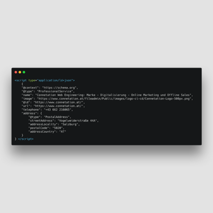 Ihren Webauftritt mit strukturierten Daten zu versehen ist kein großes Unterfangen. Generell unterteilt man in diesem Sinne die Inhalte einer Website in zwei grobe Bereiche: statische Inhalte, wie Telefonnummer, Anschrift und ähnliche Informationen und dynamische, wiederkehrende Inhalte wie Blogartikel, Produkte, Stellenausschreibungen und dergleichen. Inhalte, die auf Ihrer Website vorkommen und für strukturierte Daten geeignet sind, werden identifiziert und einem Schema zugeordnet. Ein Schema, was für ein Schema? Google und andere Suchmaschinen müssen selbst auf eine festgelegte Definition eines Inhaltes zurückgreifen, um diesen erst erkennen zu können. Dieser Standard wird von schema.org festgelegt und gepflegt. Schema.org ist eine gemeinsame Initiative von Google, Yandex, Microsoft und Yahoo, was die Seriosität dieser Organisation bestätigt. Diese Strukturen, nach denen Inhalte klassifiziert werden, befinden sich im sogenannten Vokabular von schema.org, wie etwa die Definition eines Blogartikels (“BlogPosting”), das die genaue Struktur und den Aufbau eines solchen Inhaltes festlegt.Nun haben wir die Struktur, aber wie wird diese eingebunden? Schemas können durch eine Vielzahl an Technologien mit Ihrer Website verbunden werden, wie zum Beispiel RDFa, Microdata und JSON-LD. Am häufigsten wird JSON-LD verwendet, durch die nahe Verwandtschaft mit ordinärem JSON und der guten Dokumentation. Diese vorgegebene JSON-LD Struktur kann als eigenes <script> Tag an einer beliebigen Stelle auf der dazugehörigen Seite eingebunden werden, da dieses das Rendering der Seite nicht blockiert und somit flexibel und “platzsparend” agiert. Auf Seiten mit dynamischen Inhalten wird nur das Grundgerüst der Struktur platziert und die Inhalte selbst durch Marker gerendert, wie standardmäßige Inhalte auch.