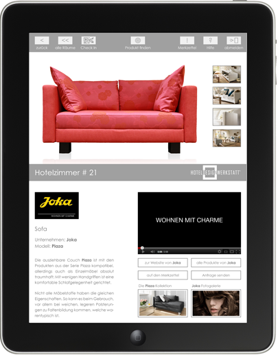 Mittels einer App soll der Besucher gezielt auf die Produkte und Leistungen hingewiesen werden und auch darüber hinaus Informationen zum anbietenden Unternehmen erhalten.
