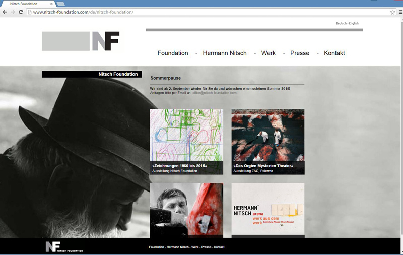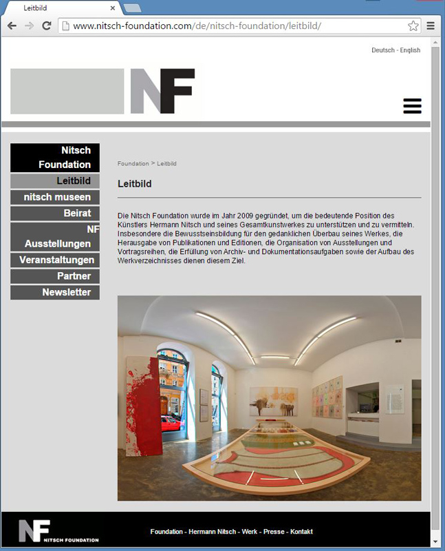 Die NITSCH FOUNDATION unterstützt und vermittelt das Gesamtkunstwerk des Künstlers Hermann Nitsch und ist unter anderem für die Bewusstseinsbildung seiner Werke, die Herausgabe von Publikationen und Editionen, sowie die Organisation von Ausstellungen und Vortragsreihen verantwortlich. Durch den Relaunch der Website sollte die Usability der Seite für Interessenten, potentielle Partner und die Öffentlichkeit optimiert werden.