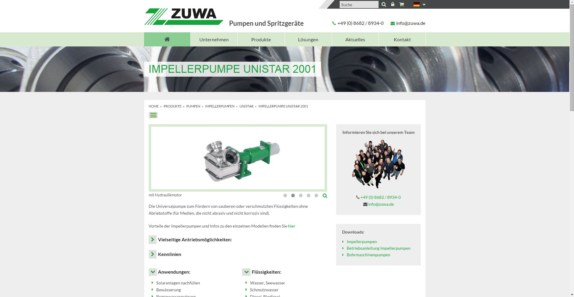 Die Website des familiengeführten Unternehmens ZUWA-Zumpe GmbH war nicht für mobile Endgeräte optimiert. Zudem war ein sehr hoher manueller Aufwand bei der Pflege der Produktinformationen des vielfältigen Produktspektrums von Pumpen, Zapfsäulen, Pflanzenschutzgeräten, Füll- und Spülstationen erforderlich. Der erhebliche manuelle Aufwand bei der Pflege der Website führte dazu, dass die Inhalte darauf sehr oft nicht aktualisiert wurden. Dies war für das weltweit agierende Unternehmen zudem ein sehr wichtiges Kriterium, um die gesamte Firmenwebsite technisch und inhaltlich wieder auf den aktuellsten Stand zu bringen.