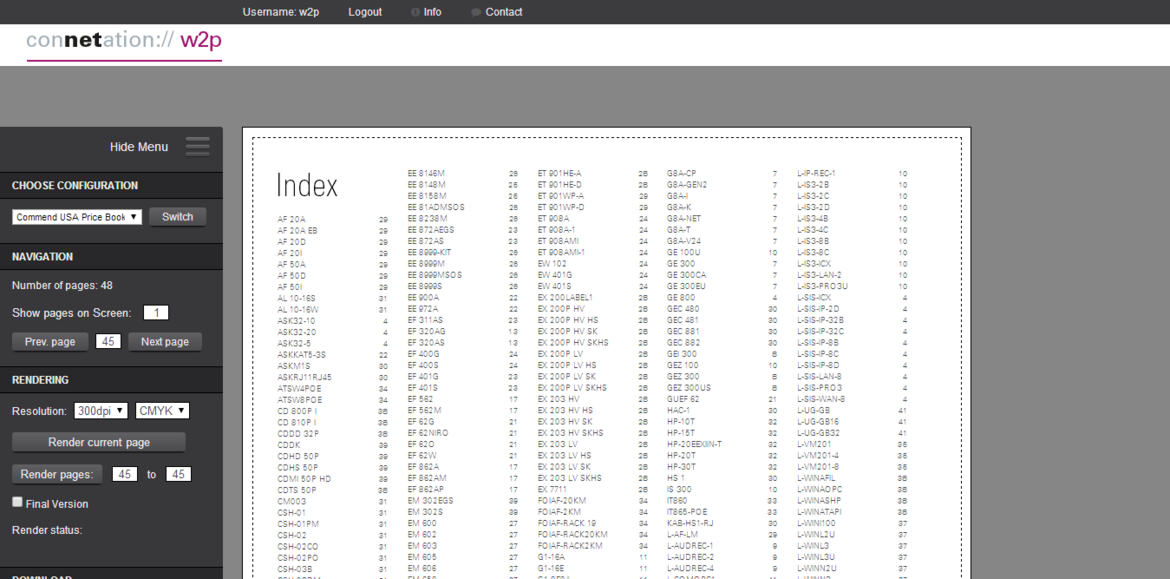 connetation hat ein spezielles Web2Print-Modul für TYPO3 entwickelt, das die Produkte von Commend seitenbasiert mit Inhaltverzeichnis und Index-Funktion vollautomatisch in einer HTML-Preview-Ansicht aufbaut.